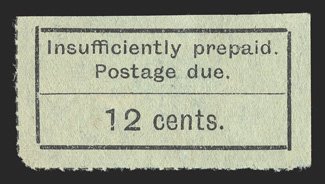 161 og S.G. #D7 ImageS.G. #D7, 1926 12c Black on green postage due, without gum as issued, slightly rounded corner at bottom left, fine and scarce (Scott #J4B; $1,600.00). (Image) £1,500