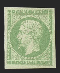 167 og Yvert #8 ImageYvert #8, 1872 5c Yellow green on yellowish, select mint example, large margins all around, uncommonly bright and fresh, o.g., trivial h.r., very fine and choice; signed Calves and accompanied by his 1993 certificate (Scott #8; $1,000.00). (Image) €1,100
