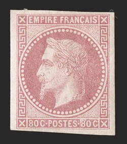 168 og Yvert #10 ImageYvert #10, 1871 80c Rose on pinkish, ample to mostly large margins, bright and fresh, o.g., h.r., very fine; signed Roumet (Scott #15; $1,100.00). (Image) €1,200