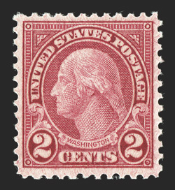 330 nh 595 Image#595, 2c Carmine coil waste, exceptionally well centered within considerably larger margins than typically found on this coil waste stamp, strong color, pristine o.g., n.h., extremely fine; 1990 PF certificate. (Image) $550.00