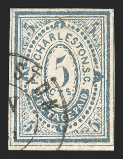 504 O 16X1 Image#16X1, Charleston, S.C., 5c Blue, full frame lines on all four sides, fresh color, light c.d.s. cancel, small thin spot, otherwise very fine; ex-Clifford Cole. (Image) $850.00