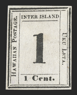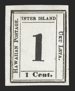 527 ng 19 Image#19, 1c Black, Plate 6-A, Type VII, Position 7, unused, with raised "I" of "Inter", ample to close margins, strong impression, trivial corner thin, otherwise very fine; the raised "I" is one of the most desirable and recognizable positions on the plate. (Image) $550.00