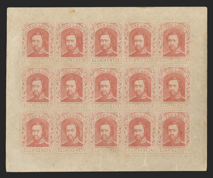 535 ogbl 29 Image#29, 2c Red on thin yellowish wove paper, a seldom seen complete mint sheet of fifteen, bright color on slightly toned paper as is usually the case, full original gum with several stamps n.h., a few trivial toned spots, very fine. (Image) $765.00+