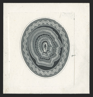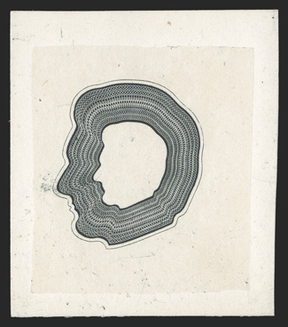 908 E Turner S-3 ImageTurner #S-3, Lincoln head design within lathework Snuff essay in black on India, 40x44mm mounted on 52x54mm card, very fine. (Image) Est. $200-300