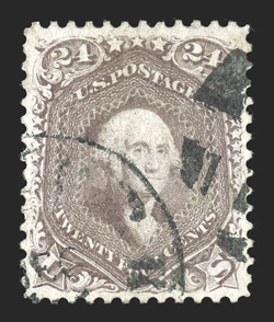 99 Ou 70 Image#70, 24c Red lilac, pretty used single that possesses incredibly deep and luxuriant color, plus its impression is prooflike, well centered within large margins, cancelled solely by a blue town c.d.s., extremely fine; 2005 PF certificate and a 2006 PF certificate (VF-XF 85; SSV $525.00). (Image) $325.00