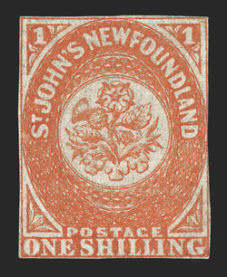 1144 ng 4 Image#4, 4p Scarlet vermilion, an exceedingly handsome and rare unused example, without gum as almost always found, brilliantly fresh with sumptuously rich color and a prooflike impression on bright paper, large even margins all around, very fine and choice; a stamp that is missing from most Newfoundland collections; 1948 RPS certificate (S.G. #4; £11,000; Unitrade C$15,000.00). (Image) $11,500.00