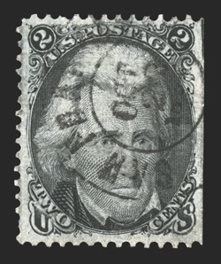 112 nh 73 Image#73, 2c Black, an outstanding "post office" fresh right sheet-margin single, being exceptionally well centered within considerably larger margins than normally found on this challenging value, wonderfully fresh color and a well incised impression on crisp paper, unblemished o.g., never hinged, extremely fine; any mint Two Cent "Black Jack" in this outstanding quality would be exciting, but to find one never hinged is an incredibly difficult task; 2011 PF certificate. (Image) for hinged $375.00