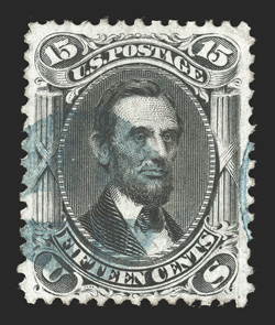 117 O 77 Image#77, 15c Black, well centered within large margins, strong color and impression, light blue cork cancels, choice very fine; 2008 PSE certificate. (Image) $210.00