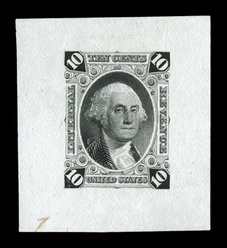 251 E Turner Essay 5b ImageTurner Essay 5b, 10c Internal Revenue, die essay, black on India paper, 38x42mm, strong color, very fine; ex-Cunliffe. (Image) Est. $150-200