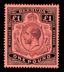 388 og 54 Image#54, 1918 £1 Black and violet on red, exceedingly well centered, bright colors, o.g., lightly hinged, very fine (S.G. #55; £325). (Image) $400.00