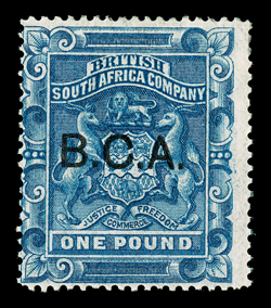 390 og 14 Image#14, 1891 £1 Blue, "B.C.A." ovpt., deep intense color, large part o.g., fine; 2008 Brandon certificate (S.G. #14; £850). (Image) $900.00