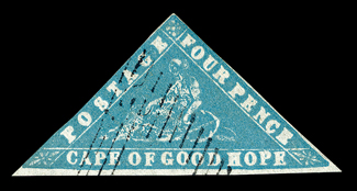 451 O 5 Image#5, 1859 4p Dull rose, a highly desirable used example of this scarce classic, with full to very large margins all around, rich color and a well incised impression, very fine and uncommonly choice; 1978 PF and 1997 BPA certificates (S.G. #4; £4,500); ex-Chapin. (Image) $5,250.00