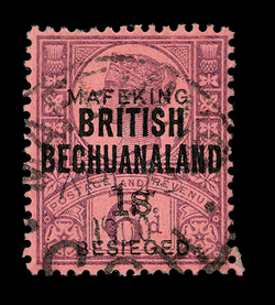 447 O 176 Image#176, 1900 "1s." on 6p Mafeking surcharge, lightly cancelled, a fine example of this scarce stamp; 1943 RPS certificate (S.G. #15; £800). (Image) $900.00