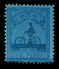 448 og 178 Image#178, 1900, 1p Deep blue on blue, position 3/1 from Plate 3, excellent color that is especially deep, o.g., fine; 2009 Brandon certificate (S.G. #18; £1,000). (Image) $1,000.00