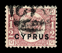 462 O 1 Image#1, 1880 ½p Rose, plate 19, used, fresh color, faint trace of a small crease, very fine; clear 1996 Brandon certificate (S.G. #1; £700). (Image) $950.00