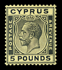465 og 109 Image#109, 1928 £5 Black on yellow, a highly select mint example of this key rare high value, possessing wonderfully fresh color and a sharp impression, uncommonly well centered as well, o.g., lightly hinged, choice very fine; 1994 BPA certificate; ex-Gross (S.G. #117a; £3,250.00). (Image) $3,200.00