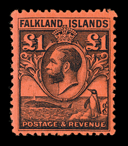 477 og 26 Image#26, 1924 £1 Violet and black on red, nicely centered, strong colors, o.g., lightly hinged, very fine (S.G. #24; £550). (Image) $600.00