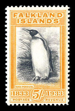 471 og 74a Image#74a, 1933 5/- Yellow orange and black, bright fresh colors, o.g., lightly hinged, fine (S.G. #136a; £2,225). (Image) $2,000.00