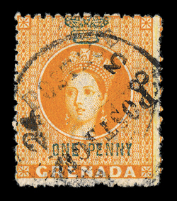480 O 15a Image#15a, 1883 Half of 1p Orange bisect used as ½p, unsevered pair, light c.d.s. postmark, deep color, fine (S.G. #29a; £450). (Image) $525.00