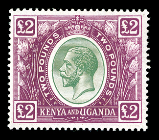 508 og 38 Image#38, 1922 £2 Brown violet and green, deep vibrant colors on bright white paper, well centered, o.g., very fine (S.G. #96; £800). (Image) $800.00