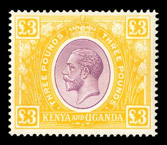 509 nh 39 Image#39, 1925 £3 Yellow and dull violet, pristine mint single, with gorgeous bright colors, o.g., never hinged, very fine (S.G. #97; for hinged £1,100). (Image) for hinged $1,650.00