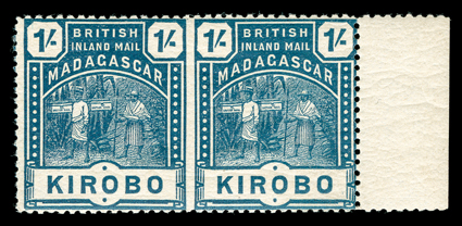 524 nh S.G. #60a ImageS.G. #60a, 1895 1/- Slate blue British Inland Mail, horizontal pair, imperforate between, strong rich color on bright fresh paper, o.g., never hinged, fine. (Image) for hinged £475