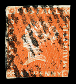 529 O 3 Image#3, 1848 1p Orange on thick yellowish paper, earliest impression, position 2, bright color and a sharp early impression, full margins at left and top, just into the design at bottom left, a collectable example of this rare classic stamp; 2008 Brandon certificate (S.G. #3; £16,000). (Image) $18,500.00