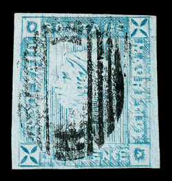 530 O 4c Image#4c, 1848 2p Blue on yellowish paper, worn impression, position 8, four large margins, centrally struck target cancel, very fine; 1980 Brandon certificate (S.G. #20; £1,400). (Image) $1,300.00