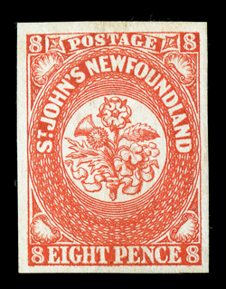 539 og 8 Image#8, 8p Scarlet vermilion, a highly select mint single, with four large even margins, brilliantly fresh color and a sharp detailed impression, full original gum, lightly hinged, extremely fine; signed A. Brun (Unitrade C$500.00). (Image) $450.00