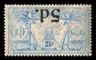 542 og 39a Image#39a, 1924 "5d." Surcharge on 2½d Ultramarine, inverted surcharge, a pleasing mint example of this rare error, nicely centered, toned o.g. as usual, barest trace of possible hinging, very fine; a stamp which is missing from most collections; signed Calves (S.G. #42a; £3,000). (Image) $2,750.00