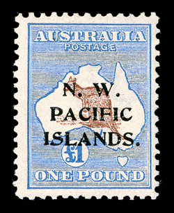 548 og 10 Image#10, 1915 £1 Ultramarine and brown, strong rich colors on fresh white paper, o.g., lightly hinged, very fine; 1988 Brandon certificate (S.G. #85; £450). (Image) $700.00
