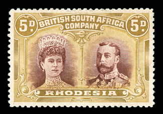 556 og S.G. #156a ImageS.G. #156a, 1910 2/6 Bistre brown and crimson, uncharacteristically well centered, lovely rich colors, o.g., a very fine example of this scarce shade (Scott #113 var.). (Image) £1,100