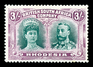 558 og S.G. #158 ImageS.G. #158, 1910 3/- Deep bluish green and deep purple (RSC "A"), rich luxuriant color in this scarcer shade, exceptionally well centered within large margins, o.g., extremely fine (Scott #114 var.). (Image) £225