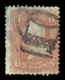 58 O 65 Image#65, 3c Rose, bright fresh single cancelled by fancy Five-point Star within Star postmark (S-E #ST-ST3), very fine strike; a beautiful example of this star cancel; 2011 PF certificate. (Image) Est. $300-400