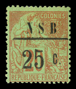 788 og Yvert #17 ImageYvert #17, 1890 "N S B/25" Ty. III Surcharge on 75c Carmine on rose, remarkably fresh mint single, o.g., l.h., very fine and scarce; only 200 stamps were surcharged; signed Bernichon and Calves and accompanied by 1998 Behr certificate; ex-Neal Allen (Scott #15; $950.00). (Image) €1,100