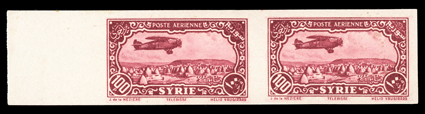 862 nh Yvert #PA50-59 var. ImageYvert #PA50-59 var., 1931-33 50c-100pi Air posts, imperforate cplt. in either right or left sheet-margin horizontal pairs, large margins, brilliant colors, o.g., n.h., 5pi with tiny adherence on gum and small thin in the margin only, otherwise extremely fine; only 200 imperforate (100 pairs) of each were printed (Scott #C46-56 var.; for hinged $850.00+). (Image) for hinged €1,300+