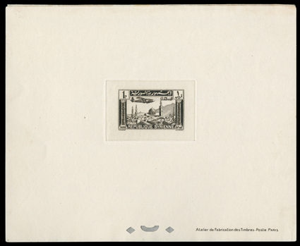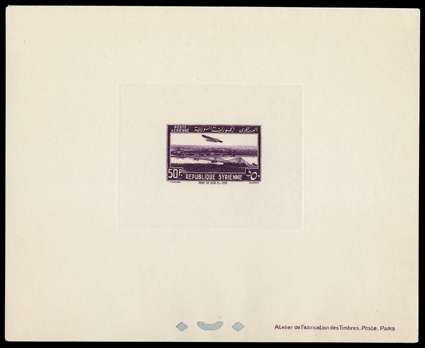 863 P Yvert #PA78-85P ImageYvert #PA78-85P, 1937 ½pi-25pi Air post deluxe proofs cplt., all with glassine interleaving still attached, a couple values with a tiny tear, otherwise very fine (Scott #C80-87P). (Image) €4,000