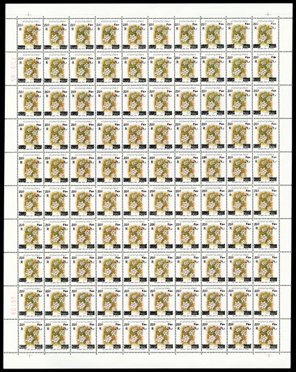 910 nhbl 2792 var. Image#2792 var., 2000 250r on 60r Surcharges, Center Inverted, complete sheet of 100, o.g., n.h., very fine. (Image) $2,500.00+