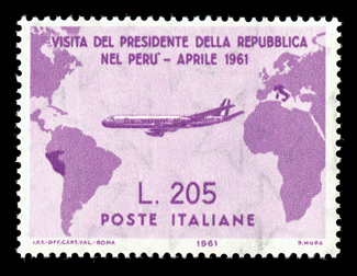 916 nh 834a Image#834a, 1961 205l Rose lilac Map error, well centered, exceptionally bright and fresh, o.g., n.h., very fine; signed Bolaffi (Sassone #921; €1,850). (Image) $1,650.00