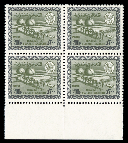 930 nhbl 450 Image#450, 1966-78 200p Gas-Oil Plant, bottom sheet-margin block of four, trivial corner perf. crease at top right, o.g., n.h., very fine. (Image) $1,600.00+
