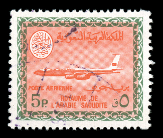 931 O C37 Image#C37, 1965-70 5p Saudi Airline Boeing 720-B, used single, Riyadh c.d.s. cancel, very fine; scarce stamp and the key value to completing the set. (Image) $550.00