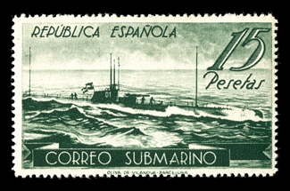 939 nh 605A-F Image#605A-F, 1938 1P-15P Submarines cplt., post office fresh mint set, o.g., n.h., 2P tiny thin spot, otherwise very fine (Edifil #775-80; €940). (Image) $800.00
