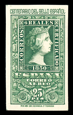 940 nh 776-79, C127-30 Image#776-779, C127-130, 1950 50c-20P Stamp Centenary cplt., o.g., n.h., very fine; four top values signed Raybaudi and accompanied by his 1981 certificate (Edifil #1075-82; €875). (Image) $625.00
