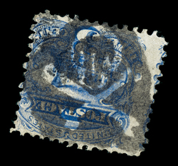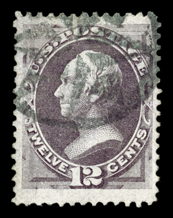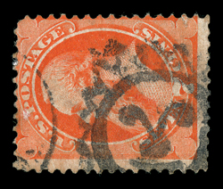 116 O 140 Image#140, 12c Dull violet with grill, a striking used example of this scarce stamp, possessing huge margins around, the size of which are practically never found on the Twelve Cent Grilled Bank Note, marvelously well centered within these huge borders, strong color, cancelled by a fancy geometric NYFM (Weiss ST-8P11), extremely fine; certainly one of the largest margined #140's we have ever seen; 1976 APS and 2010 PSE certificates. (Image) $3,750.00