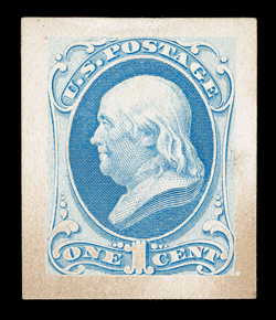 117 P 145P2a Image#145P2a, 1c Ultramarine, "Panama-Pacific" small die proof on yellowish wove, large balanced margins, usual slight toning, extremely fine; no more than five exist; 1977 PF certificate. (Image) $1,200.00