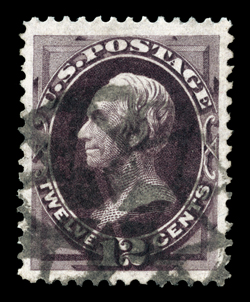 125 Ou 162 Image#162, 12c Blackish violet, especially well centered within extraordinarily large margins all around, strong rich color, fancy geometric NYFM cancel, extremely fine; a striking stamp; 1987 PF certificate and a 2008 PSE certificate (XF 90 Jumbo; SMQ $270.00 for 90 and $740.00 for 95). (Image) $140.00