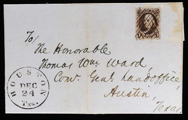 this is the earliest known usage of any adhesive stamp from Texas, and