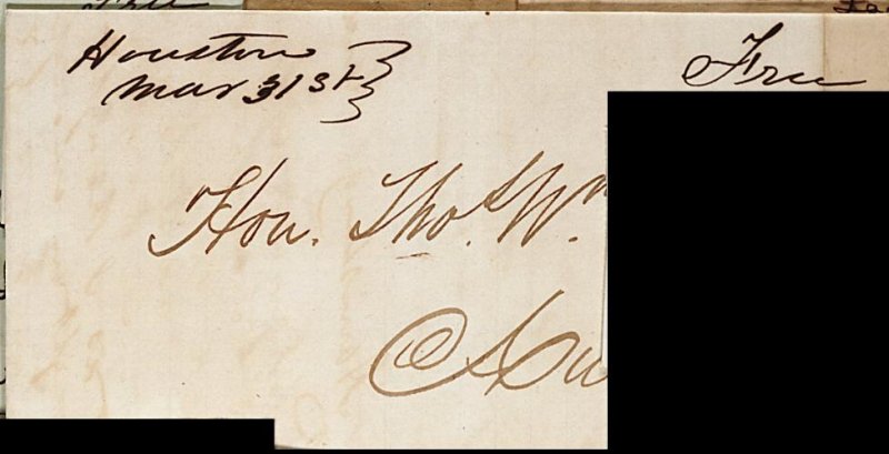 Houston Mar 31st ms. postmark and matching "Free"