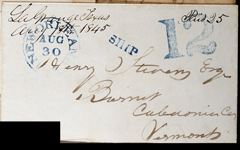 La Grange Texas/Aug. 18, 1845, ms. postmark and