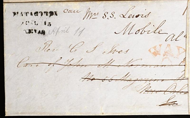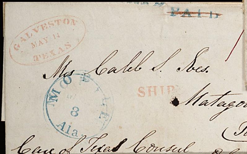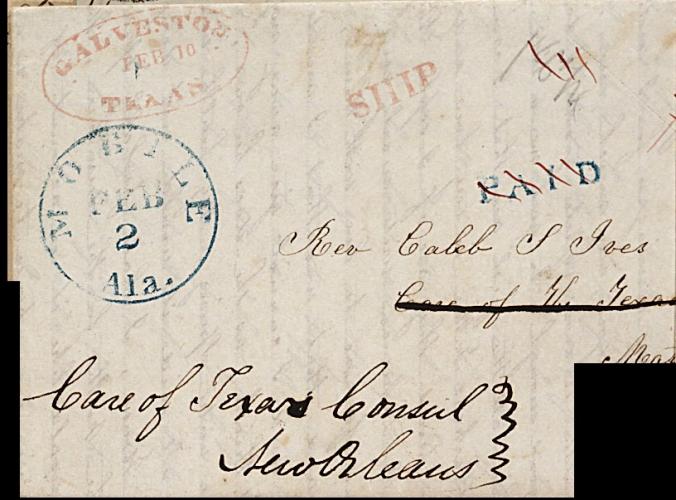 (blue c.d.s.), ms. "Care of Texas Consul New Orleans", a very fresh and